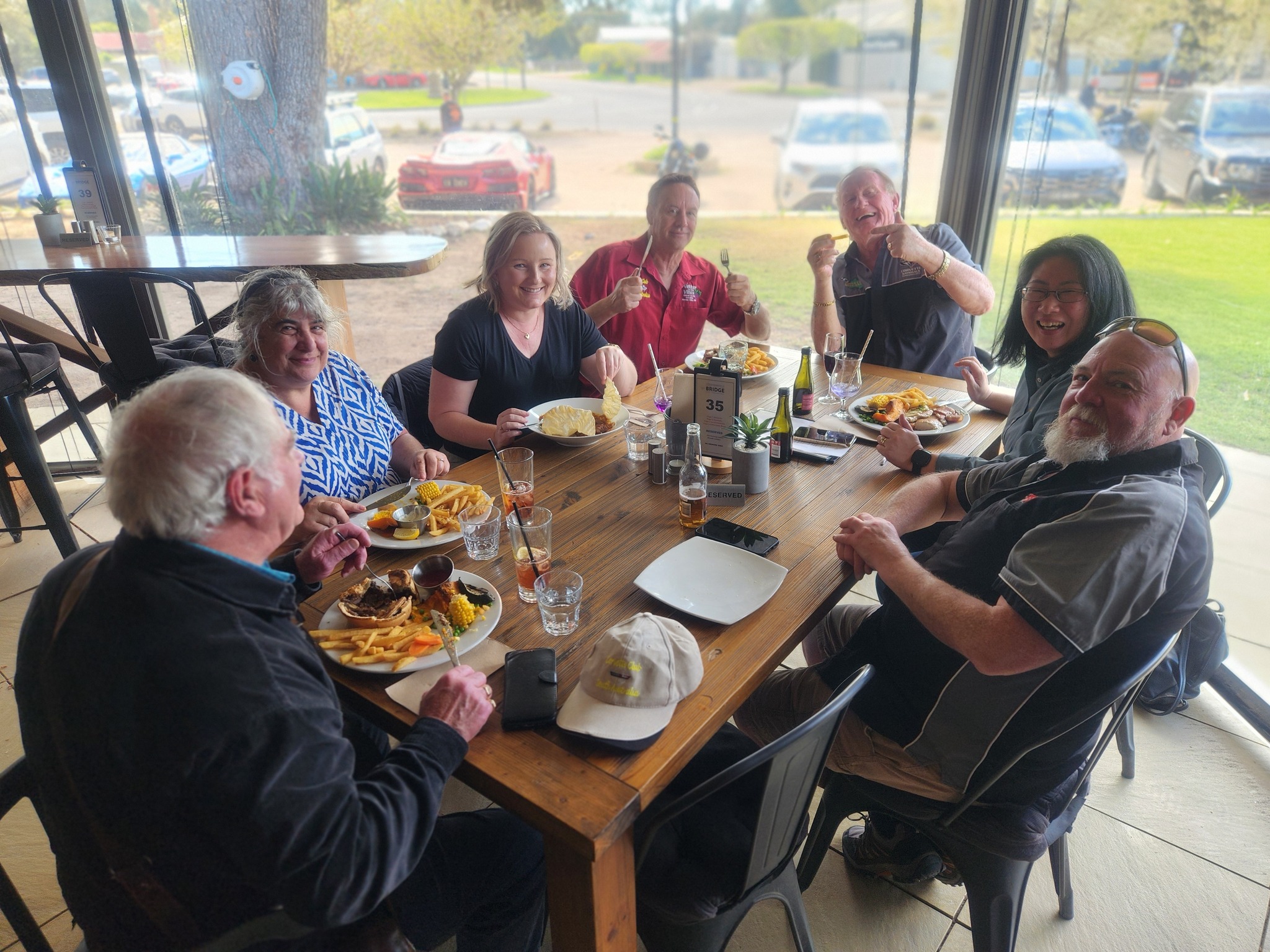 In the morning we fuelled up and had breaky at the cafĂ© next door. When I got fuel the Indian console operator commented on the impressive Corvettes and asked if we âwere all friendsâ I told him we were when we left Adelaide, but itâs a long trip to Parkes !